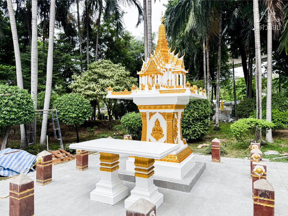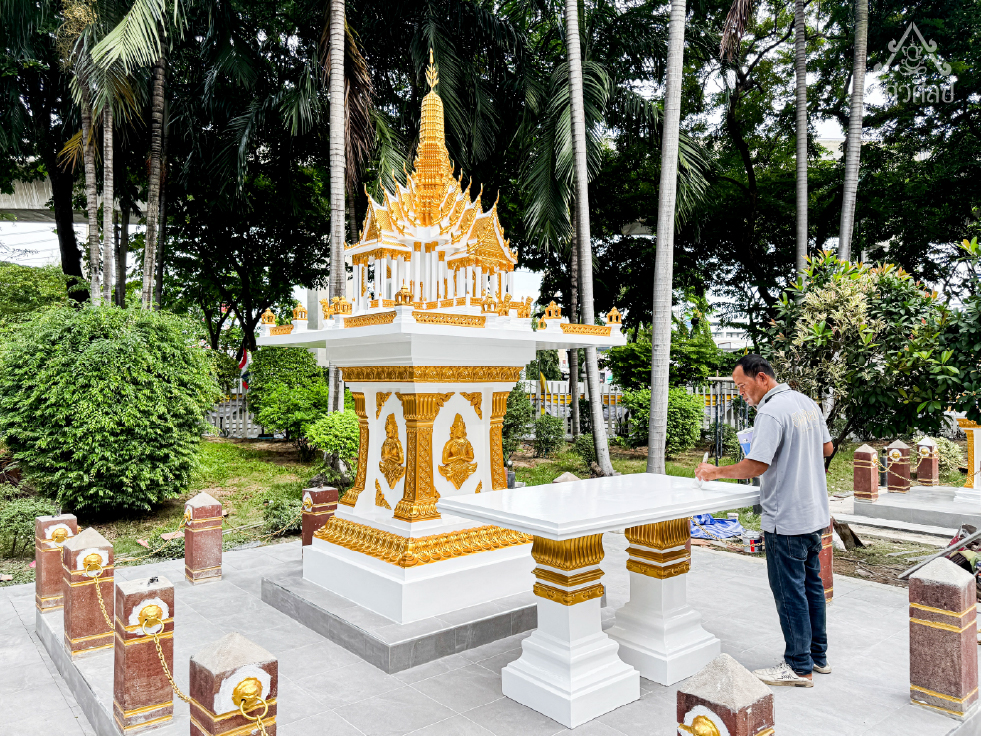 ศาลพระภูมิทรงไทยรุ่นเศรษฐีพันล้าน (งานลงสีทองอะคริลิค) ผลงานติดตั้งศาลที่ กรมการขนส่งทางบกหมอชิต