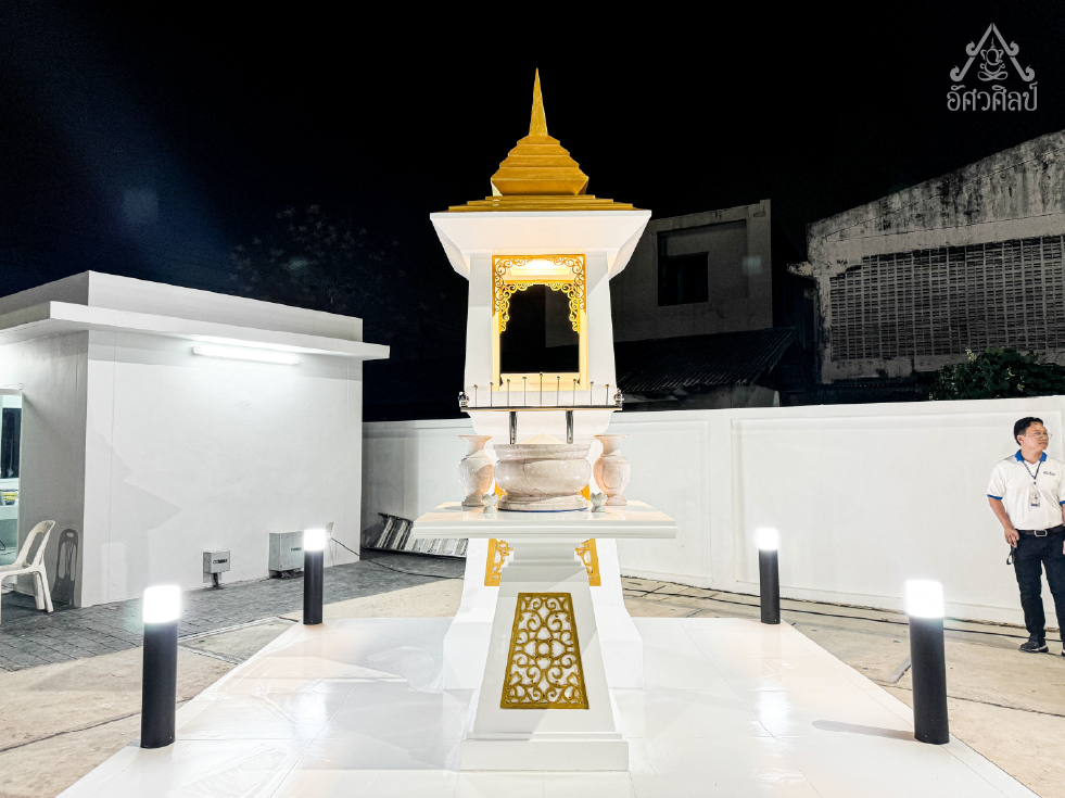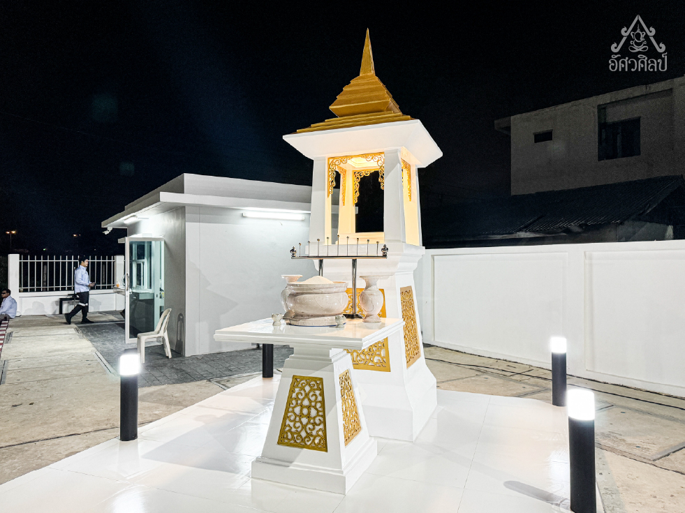 ศาลพระพรหมทรงโมเดิร์นรุ่นเดอะพาวิลเลี่ยน (งานลงสีทองอะคริลิค) ผลงานติดตั้งศาลที่ บริษัท ทีโอเอ เพ้นท์ (ประเทศไทย) จำกัด (มหาชน) TOA paint