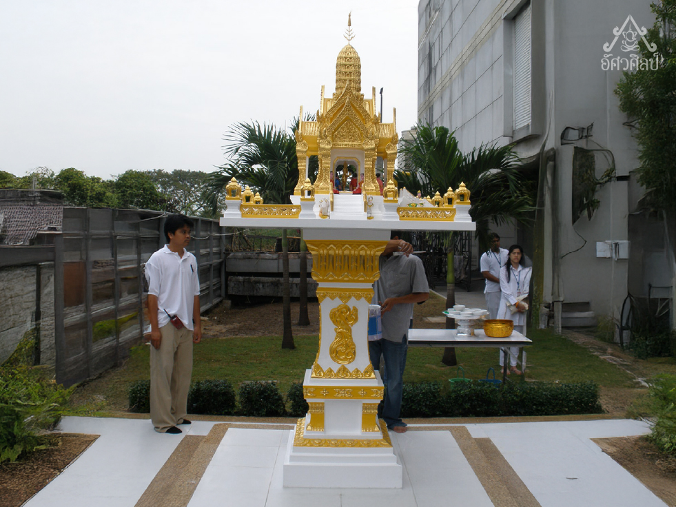 ศาลพระภูมิทรงไทยรุ่นทรัพย์สมบูรณ์ (งานปิดทองแท้) ผลงานติดตั้งศาลที่ บริษัท เวิร์คพอยท์ เอ็นเทอร์เทนเมนท์ จํากัด (มหาชน)