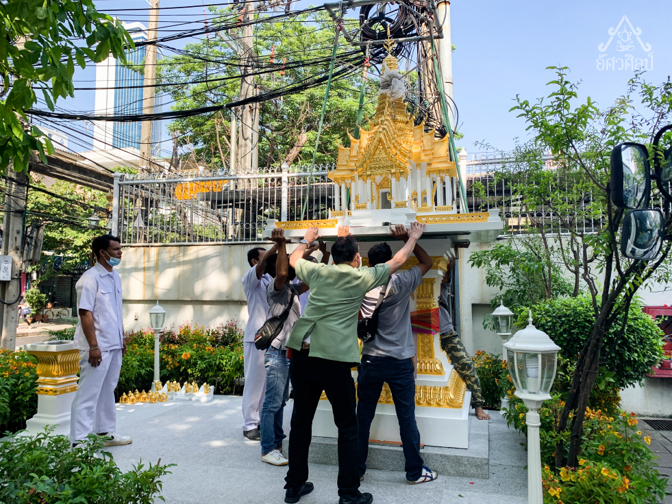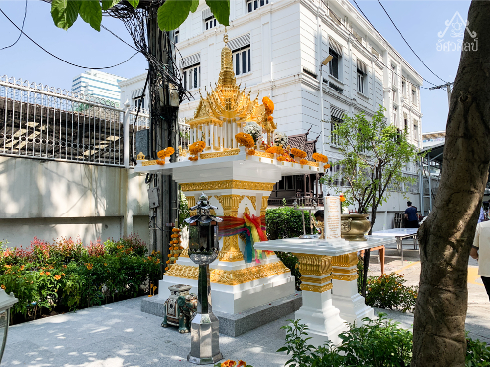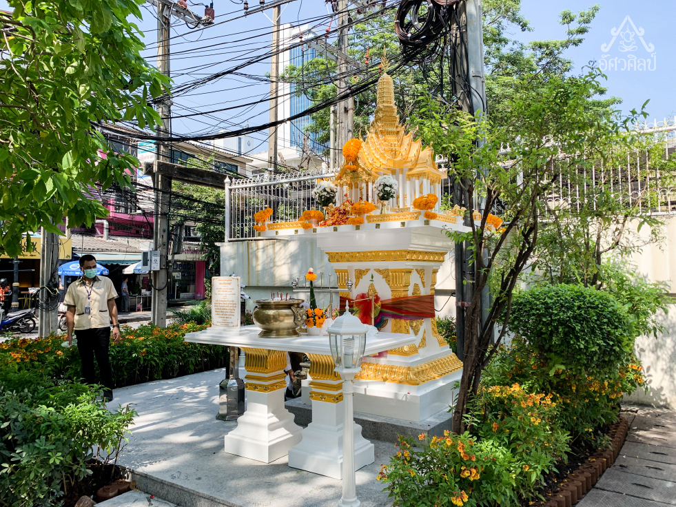 ศาลพระภูมิทรงไทยรุ่นเศรษฐีพันล้าน (งานปิดทองแท้) ผลงานติดตั้งศาลที่ โรงพยาบาลบีเอ็นเอช BNH Hospital