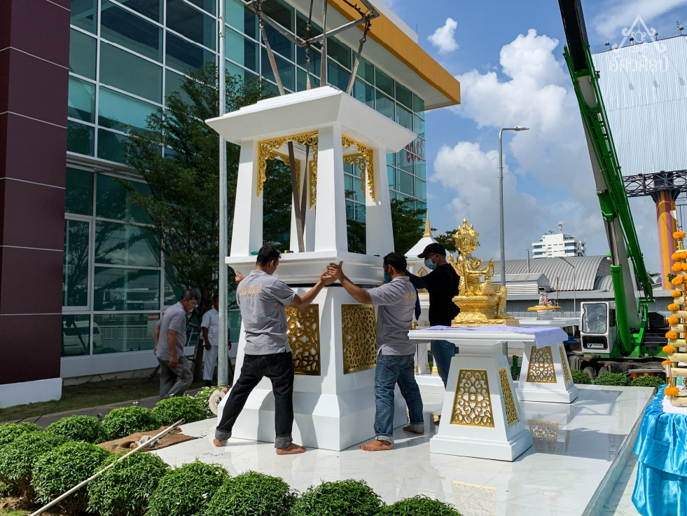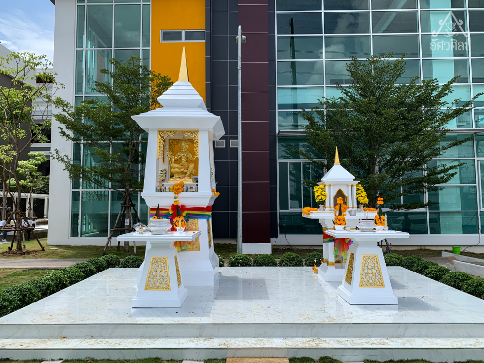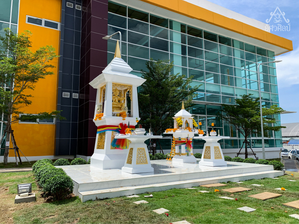 ศาลพระพรหมทรงโมเดิร์นรุ่นเกรทพาวิลเลี่ยนและศาลเจ้าที่ตายายทรงโมเดิร์นรุ่นอิมพีเรียล (งานปิดทองแท้) ผลงานติดตั้งศาลที่ ศูนย์พัฒนาเทคโนโลยีงานทาง (Central Lab) พระราม 2
