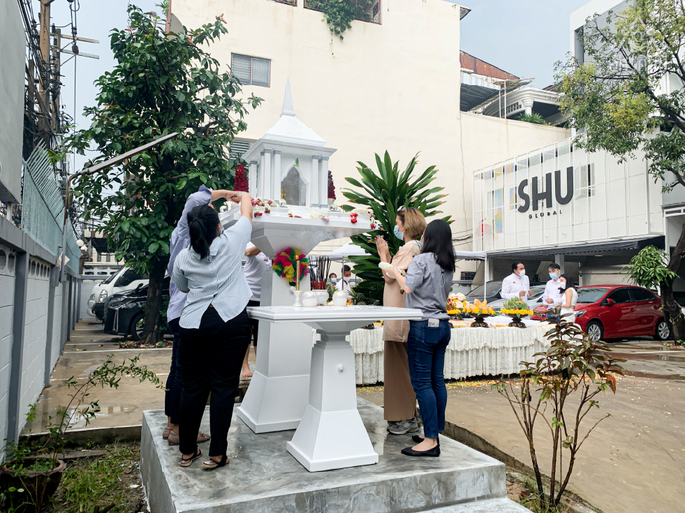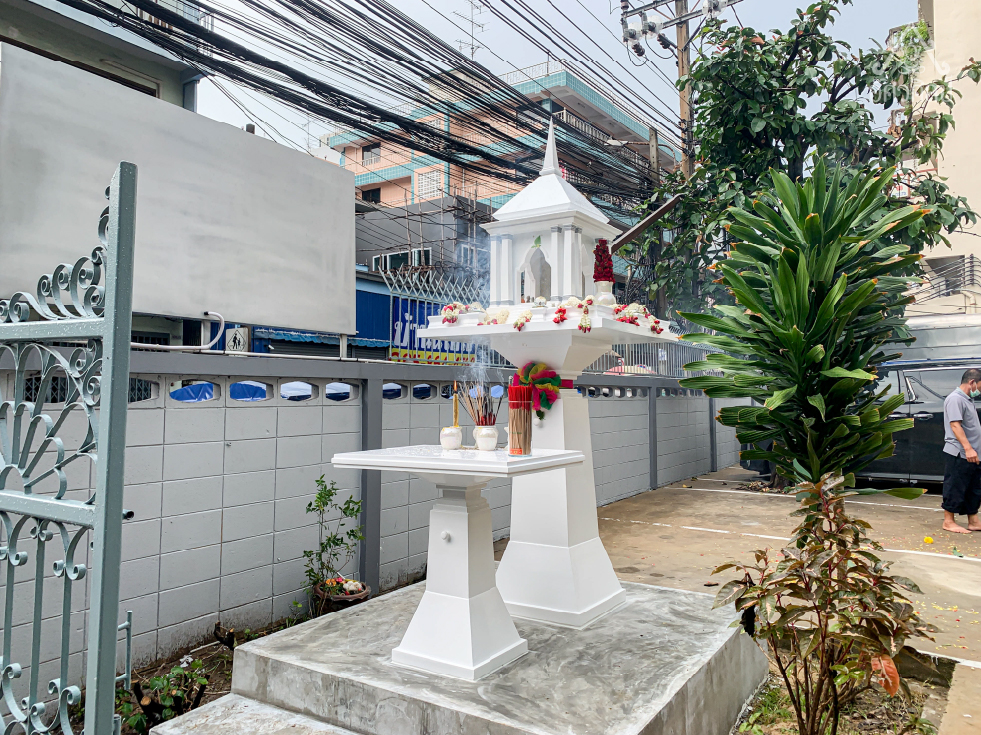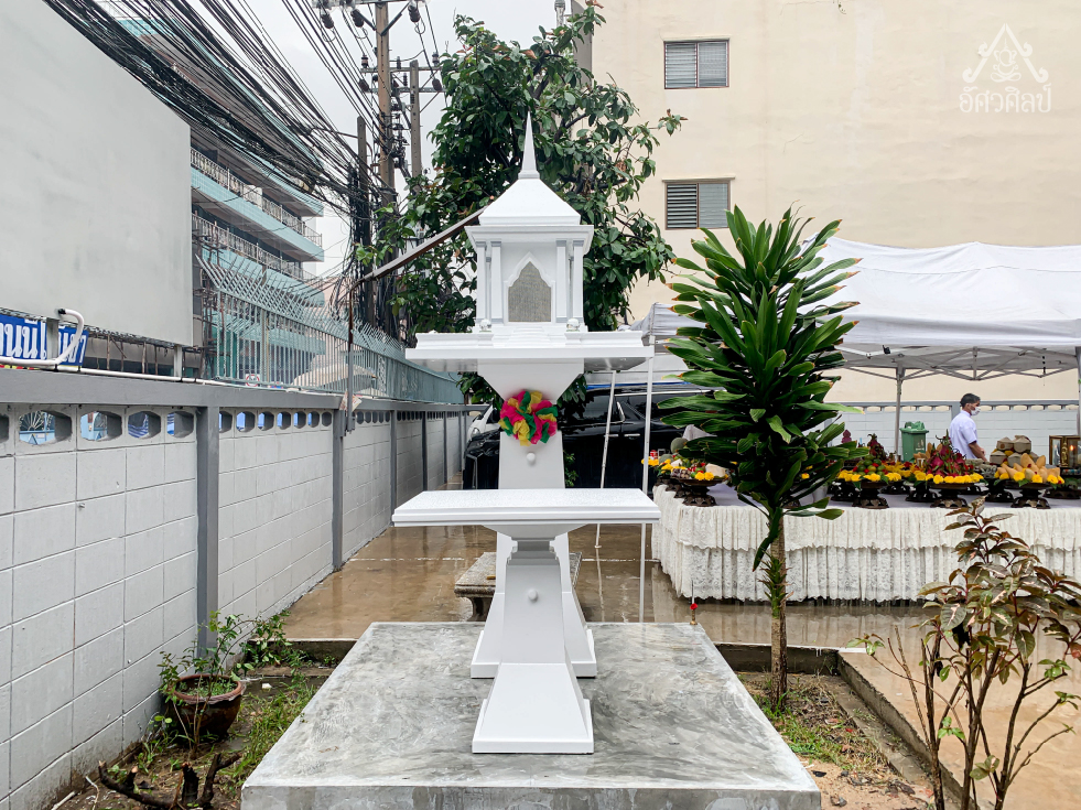 ศาลพระภูมิทรงโมเดิร์นรุ่นอิมพีเรียล (งานสีอะคริลิค,ขาวตัดเทา) ผลงานติดตั้งศาลที่ SHU GLOBAL บริษัท ชู โกลบอล จำกัด สำนักงานใหญ่